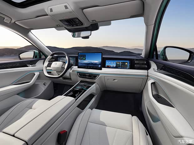 车辆内饰配备双辐式多功能方向盘、全液晶仪表以及两块大尺寸悬浮式中控屏组成的连屏设计,并会提供手机无线充电、HUD抬头显示等。动力方面,纯电版提供215千瓦和250千瓦两种电机,动力电池也有73kWh和81kWh两种选择,续航里程分别为580/565km和650/630km;增程版搭载1.5T发动机,电机最大功率为195千瓦,电池拥有20.3kWh/21.1kWh/37.4kWh三种选择,纯电续航里程分别为102km和185km。
