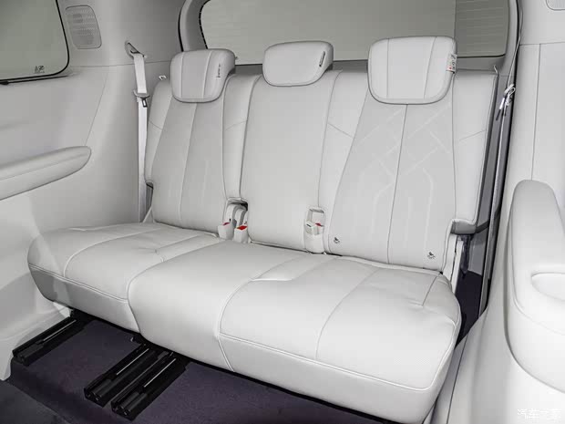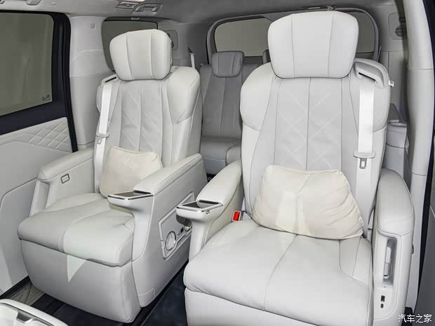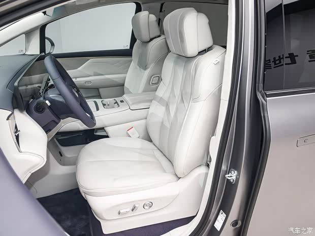 车辆第二排搭载多姿态零重力座椅,支持自适应调节与贵妃榻模式,标配悬浮层Nappa真皮座椅,前排、二排座椅均标配加热、通风及按摩功能。在便利性配置方面,至境世家纯电版还配备了云台式超低礼宾空悬,支持车身前后同步平稳下降60mm,配合低门槛+两段式加宽扶手及超宽步踏,进一步便利上下车。