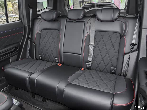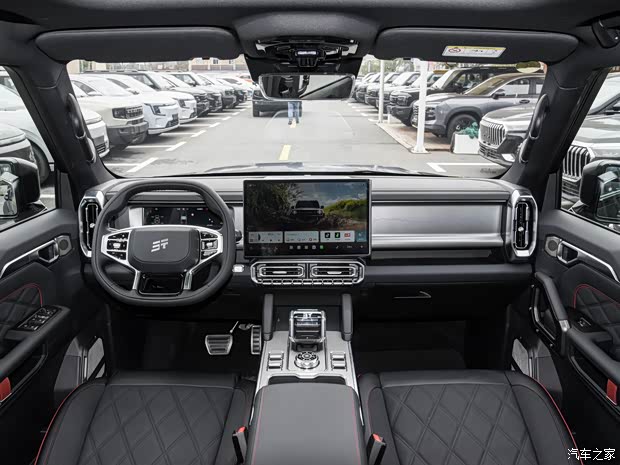 内饰方面,内饰通过增加中央通道区的扶手,强化越野设计。15.6英寸的中控屏采用高通骁龙8155芯片,TOUR OS3.0 系统,接入DeepSeek应用,高配车型配备SONY品牌12扬声器,并提供50W手机无线充电。
