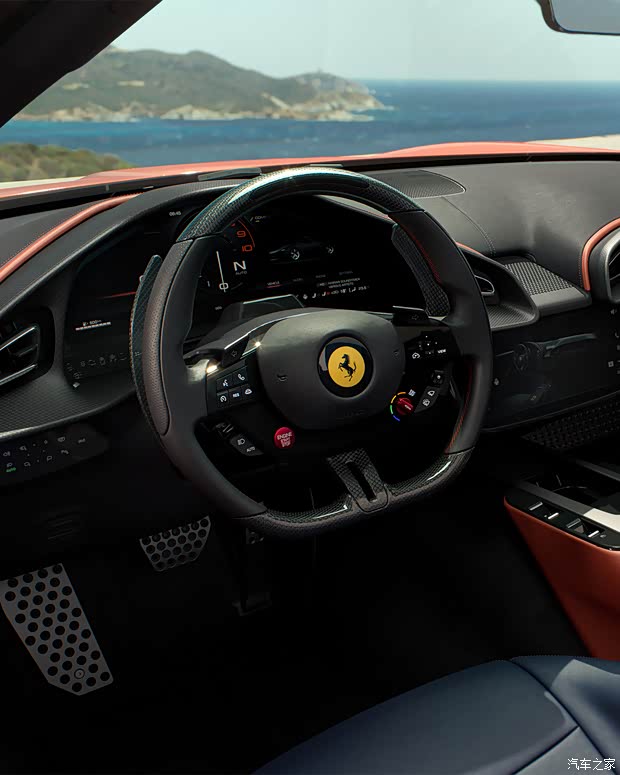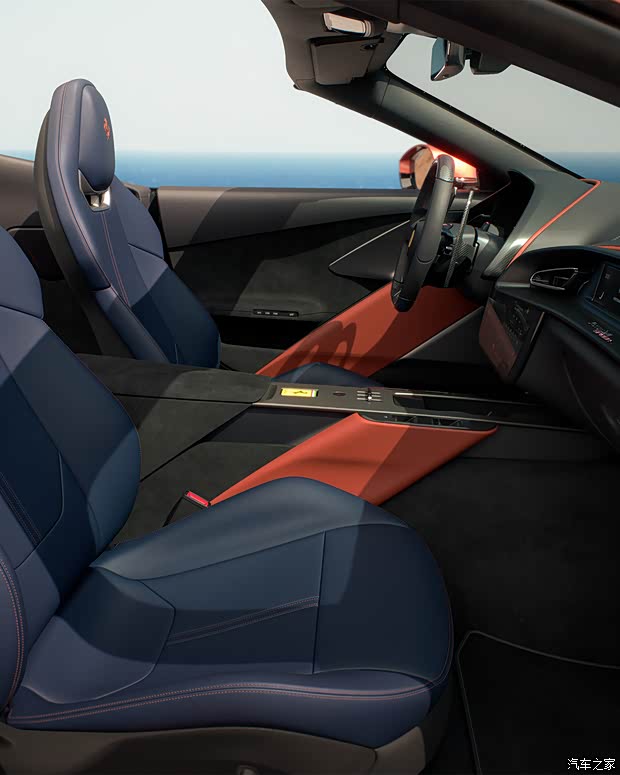 车内的设计方面,法拉利Amalfi Spider配备具有科技感的15.6英寸全液晶仪表盘并搭配三辐式触控多功能方向盘,整体造型形成环抱式的驾驶舱设计,提升氛围感。中控台中间配备了一款10.25英寸的多媒体触控屏,通道区域上配备了复古感十足的金属换挡拨杆,并单独为法拉利的长方形车钥匙设计了安置槽。