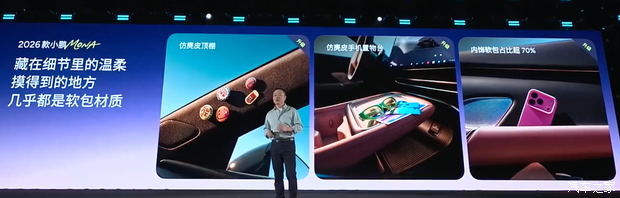 内饰方面提供拂晓紫、晨雾灰和夜幕灰三种选择,同时新款小鹏MONA M03针对细节和配置进行了升级,包括优化扶手台设计,前置手机无线充电面板并提升至50W快充;另外还有门板扩大储物空间、增加后门氛围灯、遮阳板美妆镜面积加大、256色氛围灯、前排双层夹胶玻璃以及双层镀银Low-E全景天幕等等。