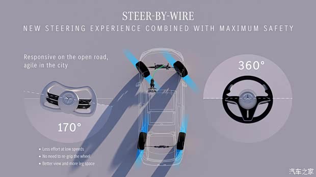 来看官图,车辆内饰将会换搭半辐式方向盘,其上下两侧均采用弧形设计,可以使上下车更方便且减小视线遮挡,同时为了适配该方向盘,奔驰还对气囊进行了重新研发。车辆还会配备线控转向技术,其不仅可以消除路面颠簸,还可以通过较小的调整实现大角度转弯,方便日常操作。该系统拥有双重信号冗余,并完成了100万公里测试。另外细节方面,可以看到新车车机UI有所调整,预计会搭载最新的MB.OS车载系统。
