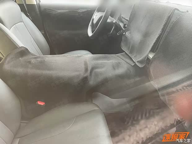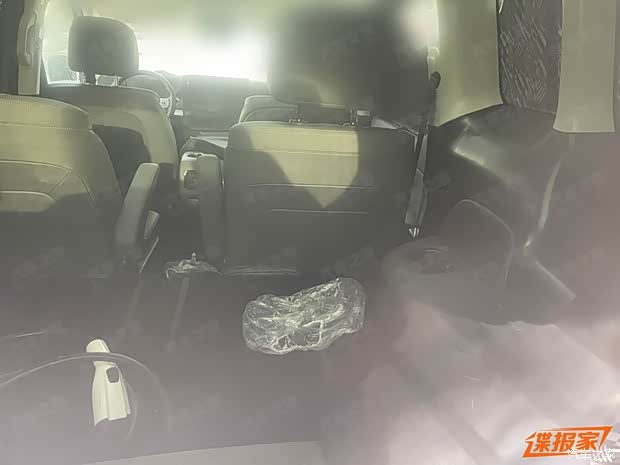 车辆内部依旧被严密的遮挡,前排能够看到双辐式方向盘以及怀挡设计,预计将会配备大尺寸中控屏。车内座椅采用2+2+2的六座布局,座椅十分厚实,不过具体配置功能还有待官方进一步公布。