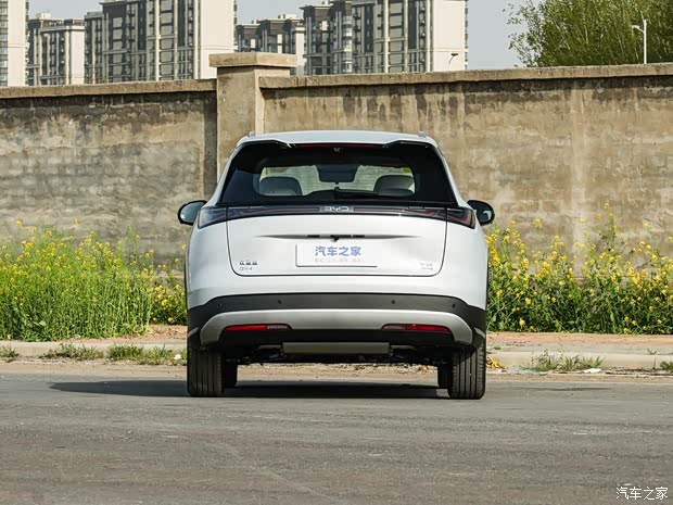 车尾设计简洁饱满,采用熏黑贯穿式尾灯组,内部融入品牌专属光源结构,中央配有“BYD”标识,点亮后辨识度突出;上方配备分段式扰流板,后包围造型厚重,排气采用隐藏式布局,整体风格与前脸呼应。