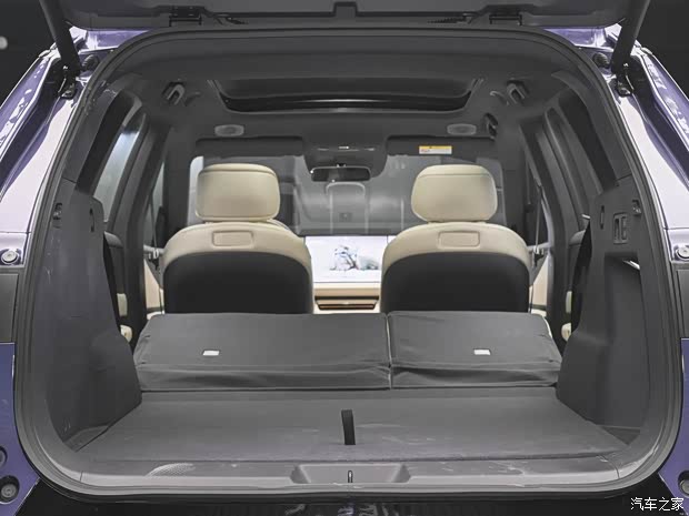 车辆尾部采用环抱式设计,展现出饱满的视觉效果。尾灯可选装由2064颗OLED组成的量子光幕尾灯,支持丰富的灯语显示。此外,日产NX8后备厢容积为773L,并具备73L下沉空间,纯电动版还会提供95L前备厢。