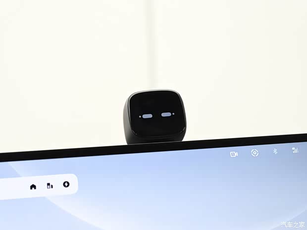 内饰方面,也仍然是家族化的布局,车内由大面积的软质包裹,并通过钢琴烤漆和256色氛围灯来装点,双色方向盘采用三辐式设计,大尺寸的方形屏保留了物理控制按键区,同时提供了语音助手的实体形象。