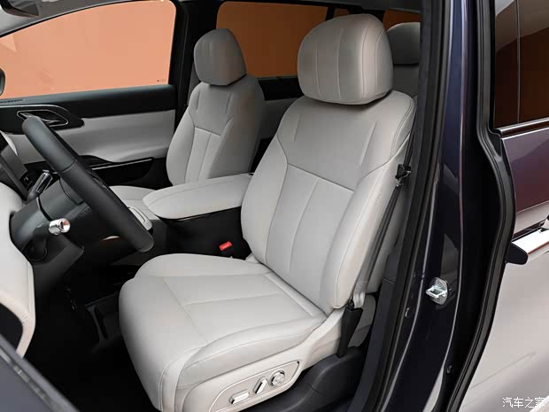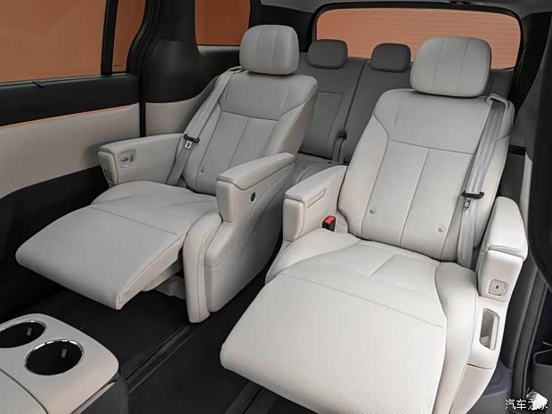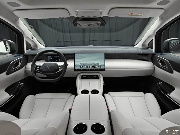 内饰方面,整体采用双色内饰设计,256色星河光韵氛围灯,中央配备大尺寸的悬浮式中控屏,方向盘也是两辐式样式,前部配备小仪表屏,中控台下方提供无线充电面板。新车采用2+2+3的7座布局,新车提供前排头枕音响在内的天空声道22扬声器殿堂级音响系统,第二排配备两个独立的零重力16点按摩座椅,座椅通风与加热也没有缺席,二排座椅带有腿托,可形成舒适躺姿,二排还提供吸顶屏、小桌板和车载冰箱。
