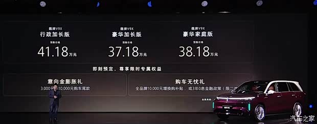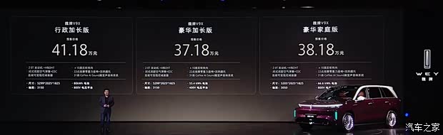 [汽车之家 资讯] 4月17日,我们从官方获悉,魏牌V9X正式开启预售,共推出3款车型,预售价区间为37.18-41.18万元。新车作为归元S平台打造的首款车型,定位大型豪华插混SUV,配备2.0T发动机+4挡混动专用变速箱+800V高压架构+6C超充的混动技术方案,最大纯电续航470km,综合续航1700km。同时,魏牌V9X还将搭载小魏同学行车智能体以及小魏同学座舱智能体,进一步丰富智能体验。同时,油电混动(HEV)和纯电(EV)车型将会在今年晚些时候上市。