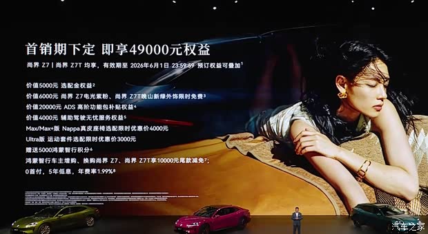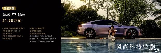 [汽车之家 新车上市] 4月22日,在2026北京车展前夕,尚界Z7(参数|询价)/Z7T两款车型正式上市,尚界Z7共推出3款车型,售价21.98-29.98万元,尚界Z7T共推出3款车型,售价22.98-30.98万元。同时,两款新车也会在车展上迎来公众亮相。车辆将全系标配896线激光雷达、华为乾崑智驾ADS 4.1、华为途灵平台、华为巨鲸电池平台、华为鸿蒙座舱5大华为黑科技及8大科技舒享配置,标配即满配,CLTC最大续航905km。全系标配华为巨鲸电池平台。