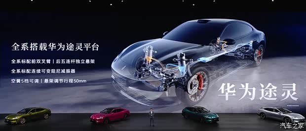 动力方面,尚界Z7将提供单电机后驱和双电机四驱版本,单电机版最大功率359马力(264千瓦),双电机版最大功率590马力(434千瓦),新车搭载81度和100度的宁德时代三元锂电池,华为巨鲸800V高压电池平台,CLTC最大续航905km,0-100km/h加速3.44秒。车身高强钢与铝合金占比高达91%,全车14处2000MPa潜艇级热成型钢。此外,新车还将全系标配华为途灵平台,支持智能车身协同控制、DATS动态自适应扭矩控制等功能。